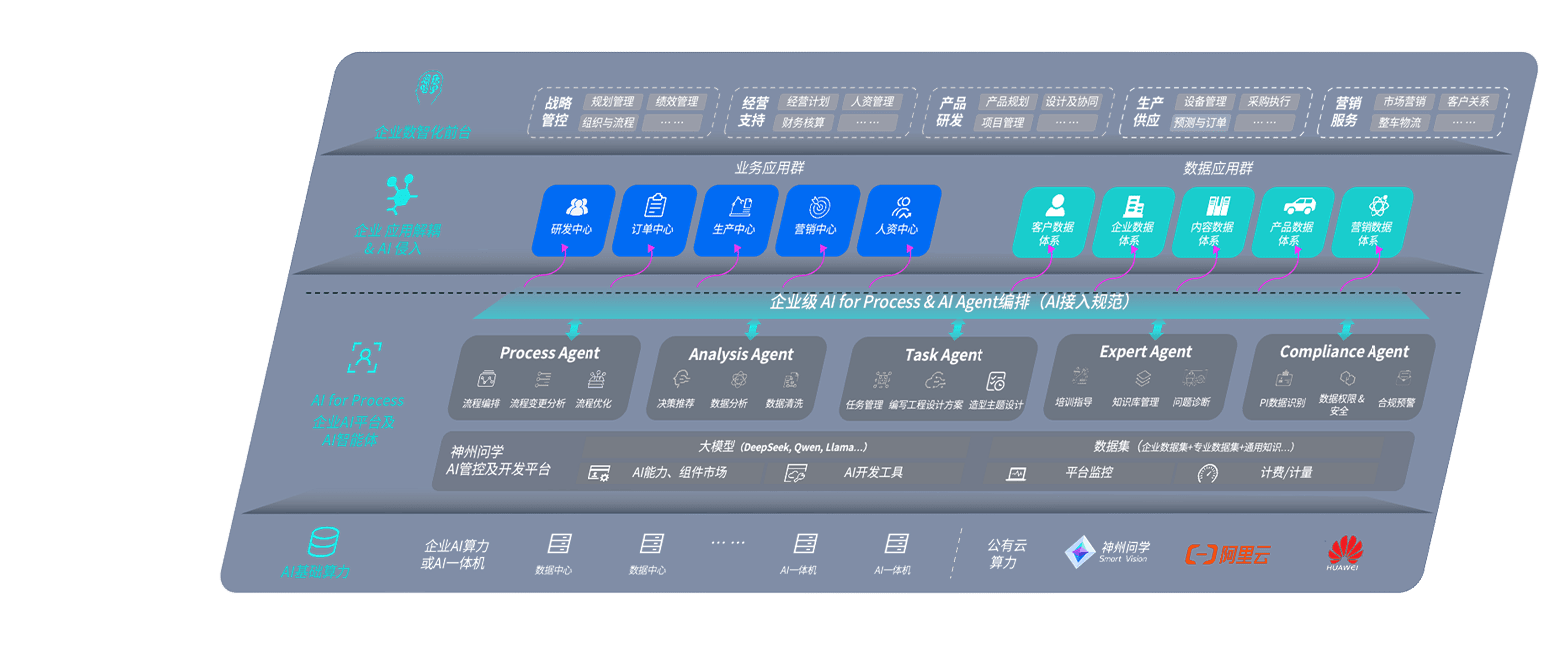 逐梦国际问学智车解决方案是一套基于AI技术的汽车行业智能化系统,,,覆盖从底层算力到顶层AI应用的全栈方案。。。。方案由算力层、、模型层和应用层组成:算力层,,方案支持多种一体机配置,,,具备云端灵活部署、、多云适配以及动态优化计算资源的能力;模型层,,,逐梦国际问学平台版提供了企业级AI应用一站式构建与管理平台,,,支持基于后训练强化技术的汽车企业专属模型的训练、、、、评测和运营;应用层,,,,逐梦国际问学DeepSeek版提供包括超级员工、、、、智能招采、、智能营销、、智能客服、、AI for BI等一系列解决方案,,,,可助力汽车行业实现数字化转型,,让管理更智能、、响应更敏捷。。。